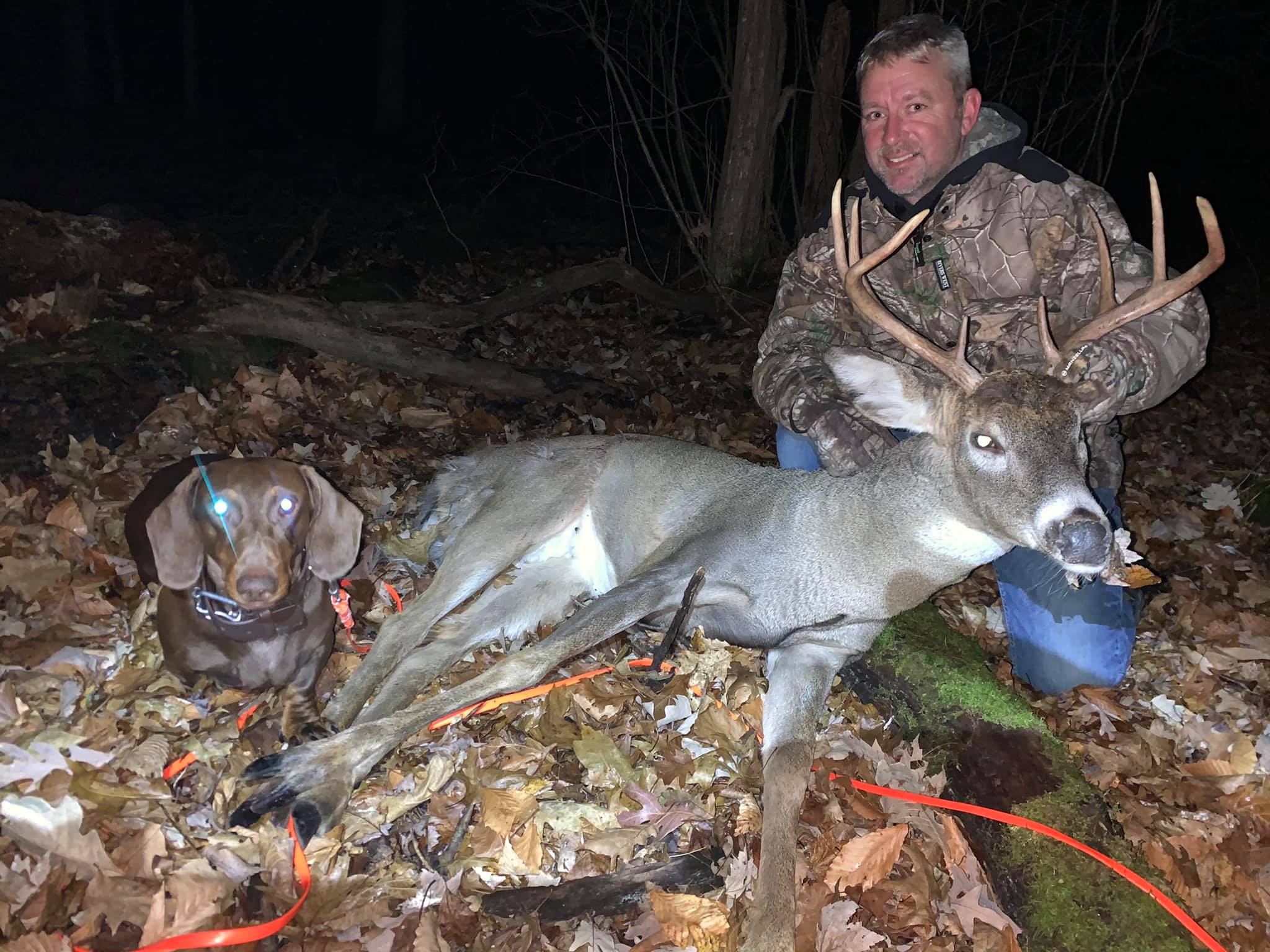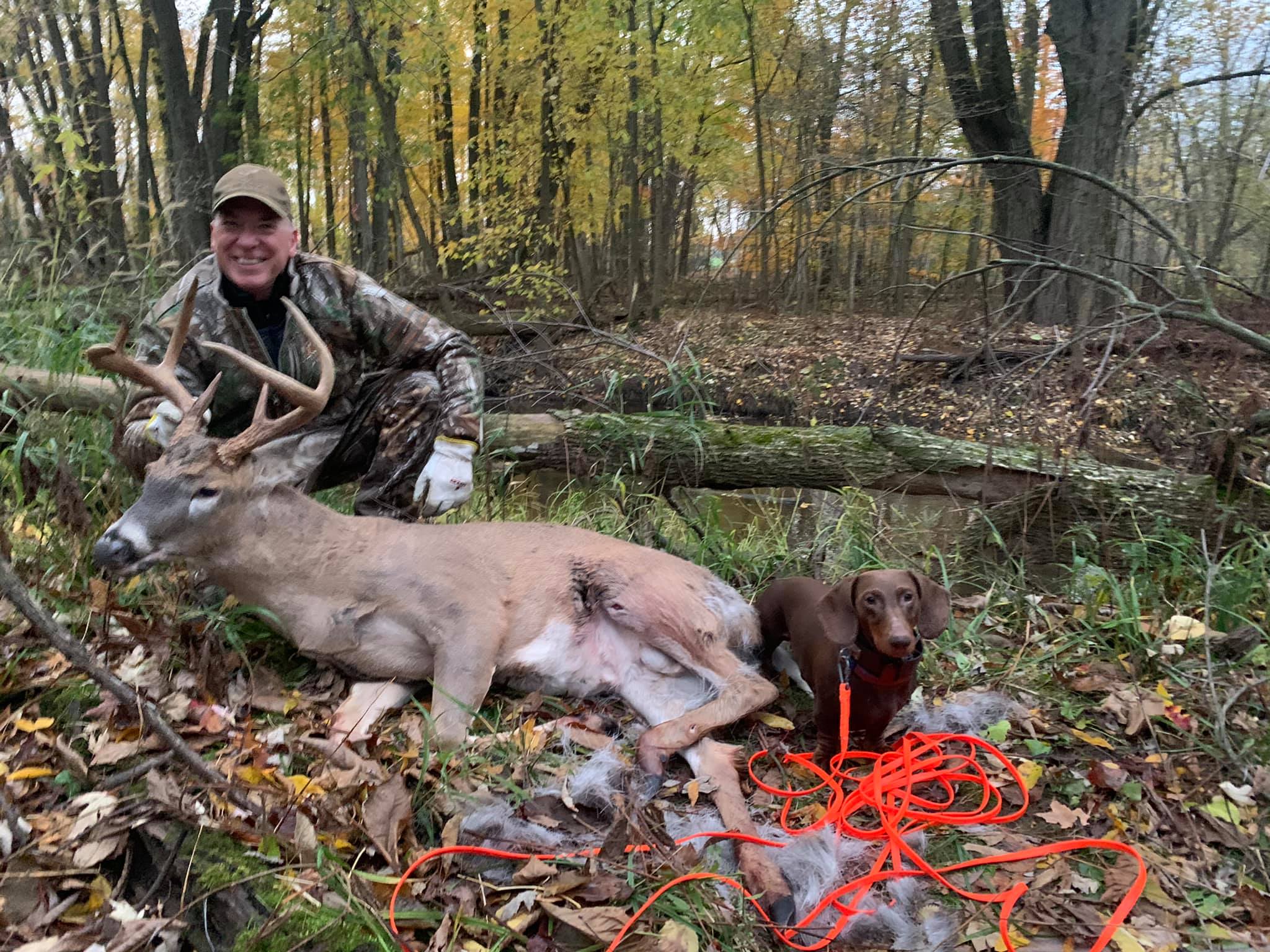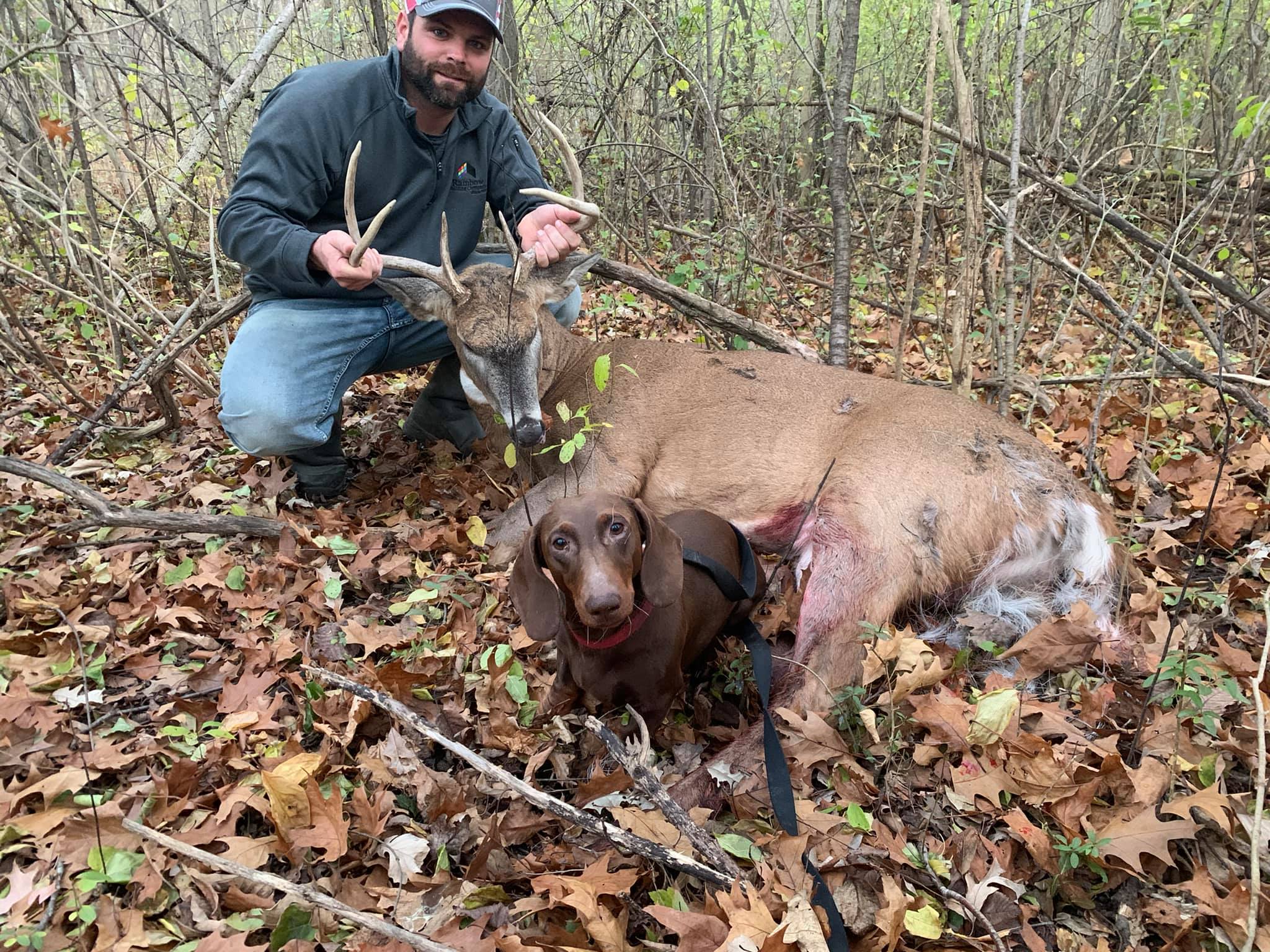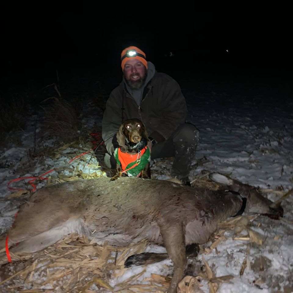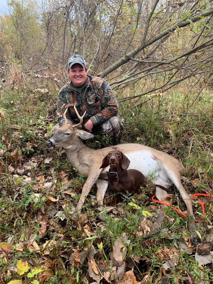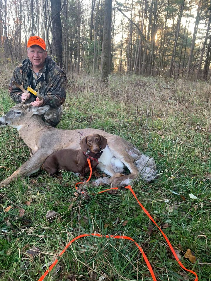 The dog is a 4 year old dachshund who is trained in the art of finding your game. With a very high success rate, Last Chance Deer Tracking is the place to call.
