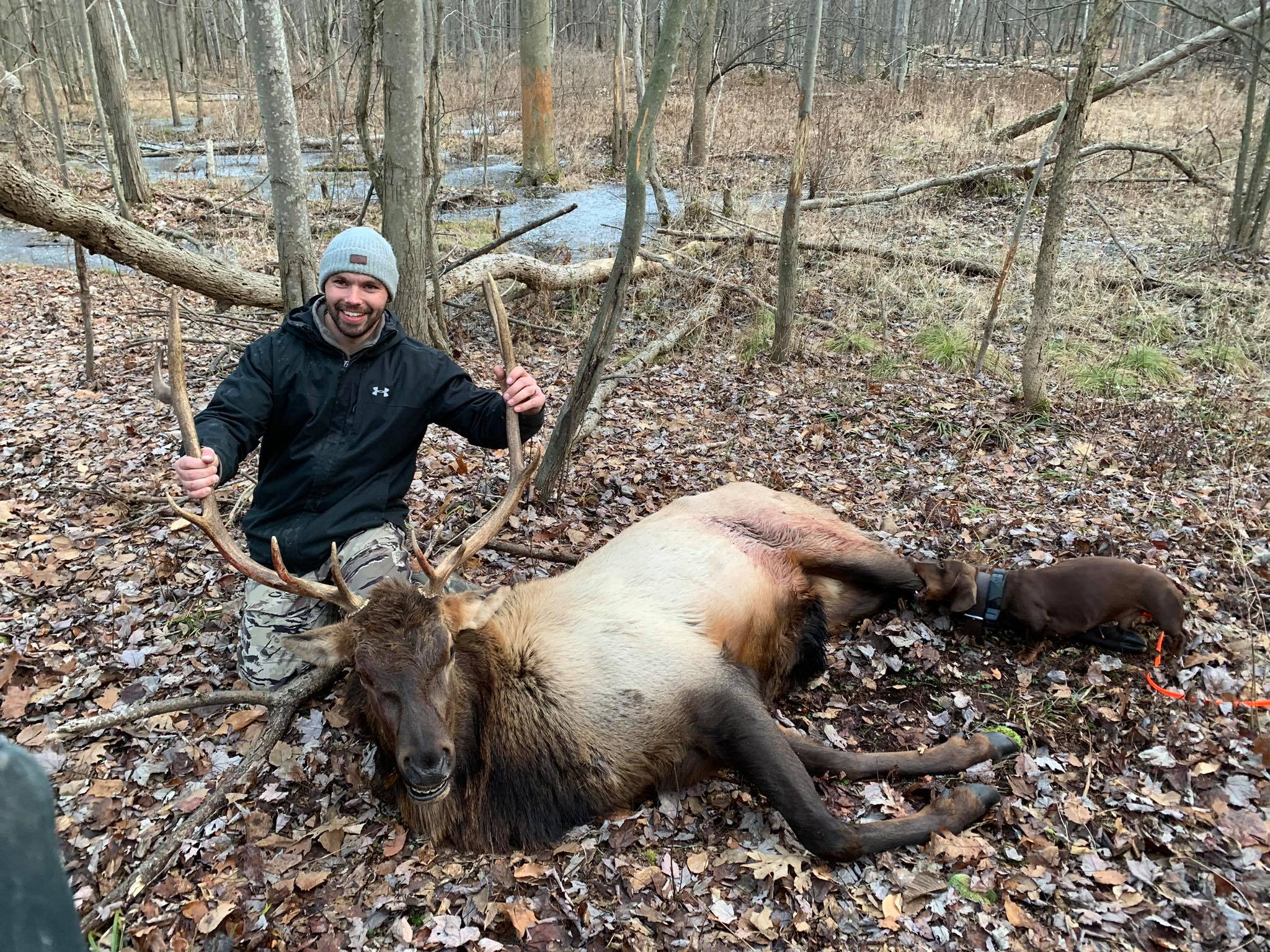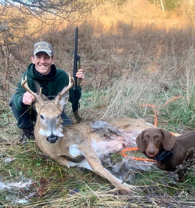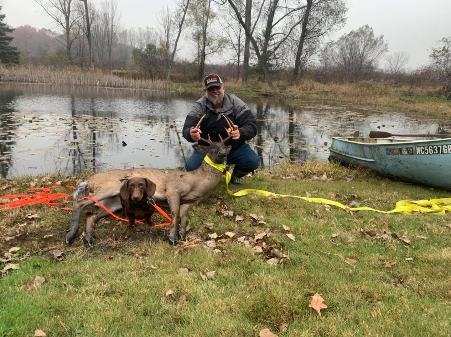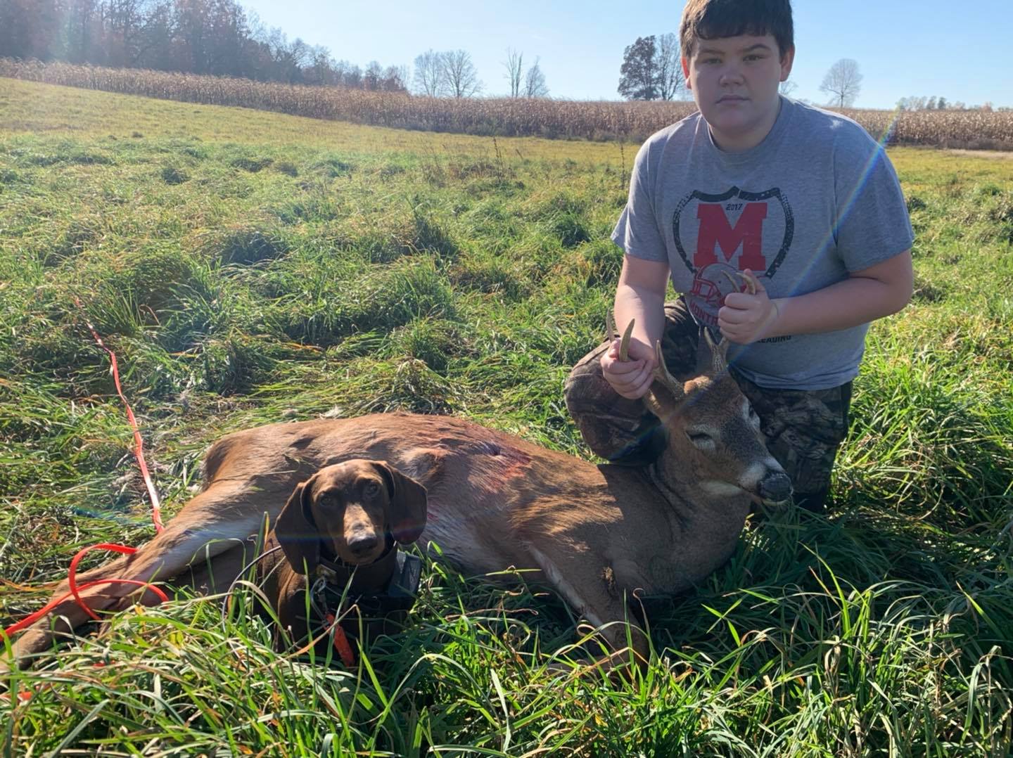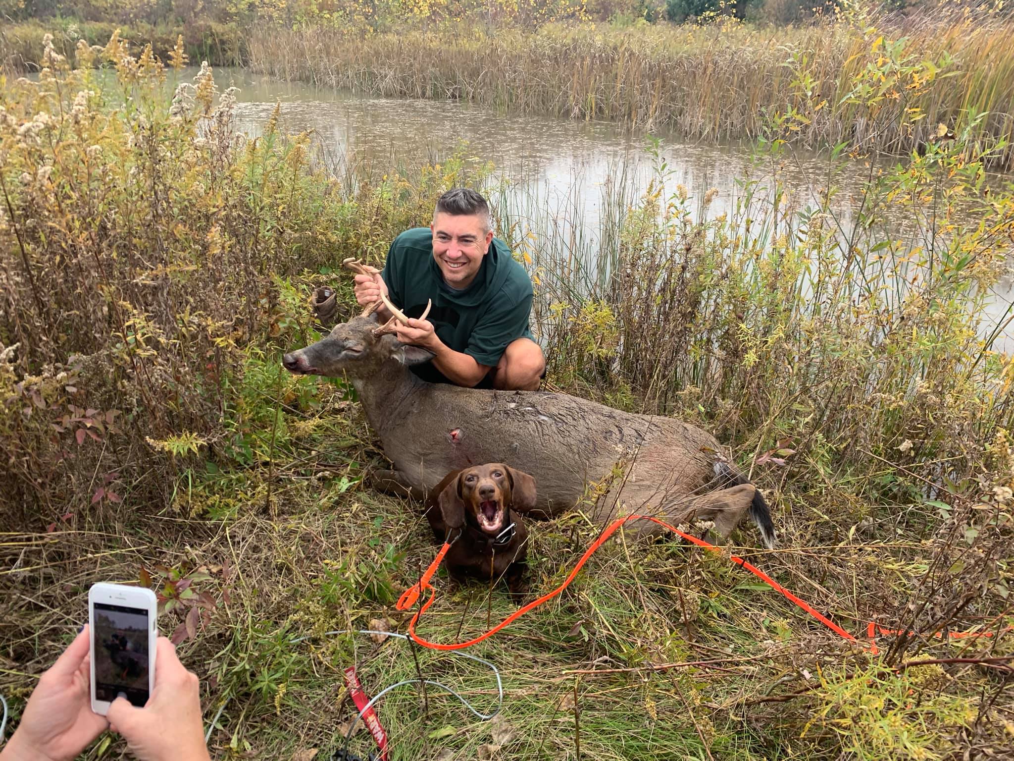 The dog is a 4 year old dachshund who is trained in the art of finding your game. With a very high success rate, Last Chance Deer Tracking is the place to call.
